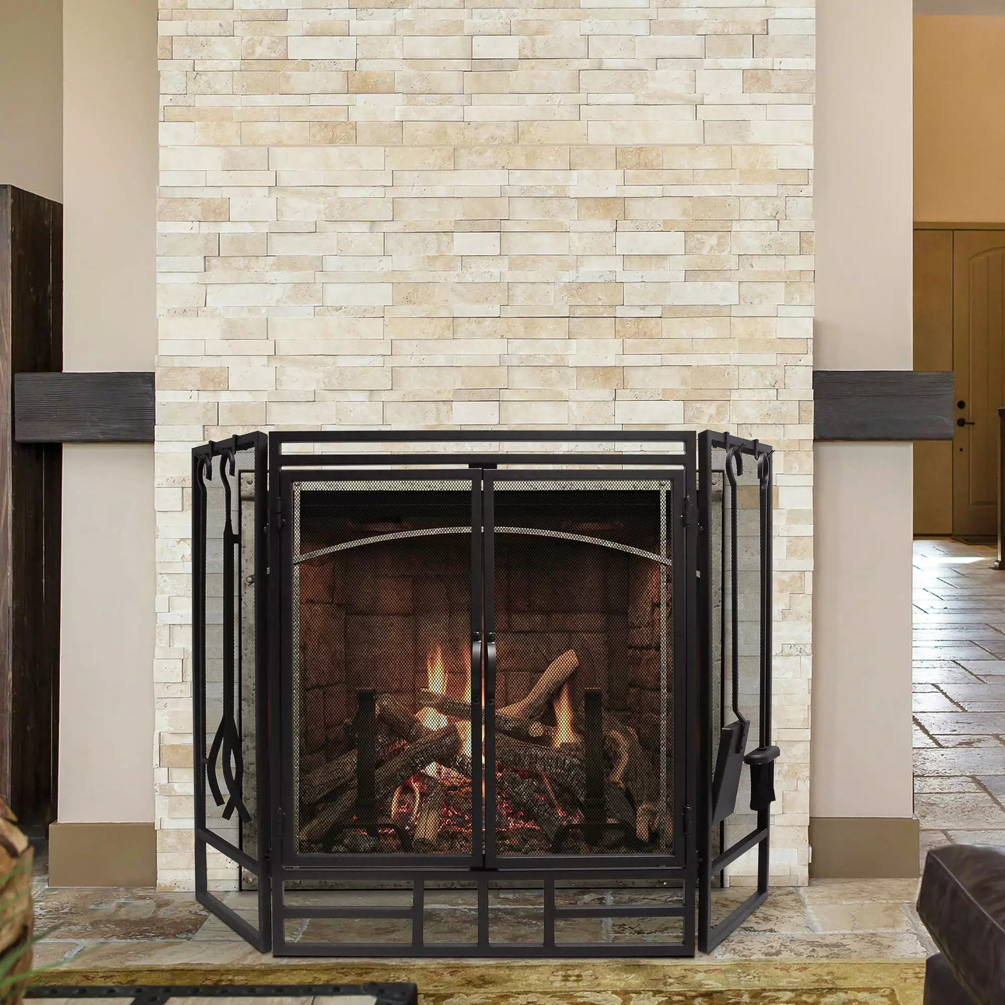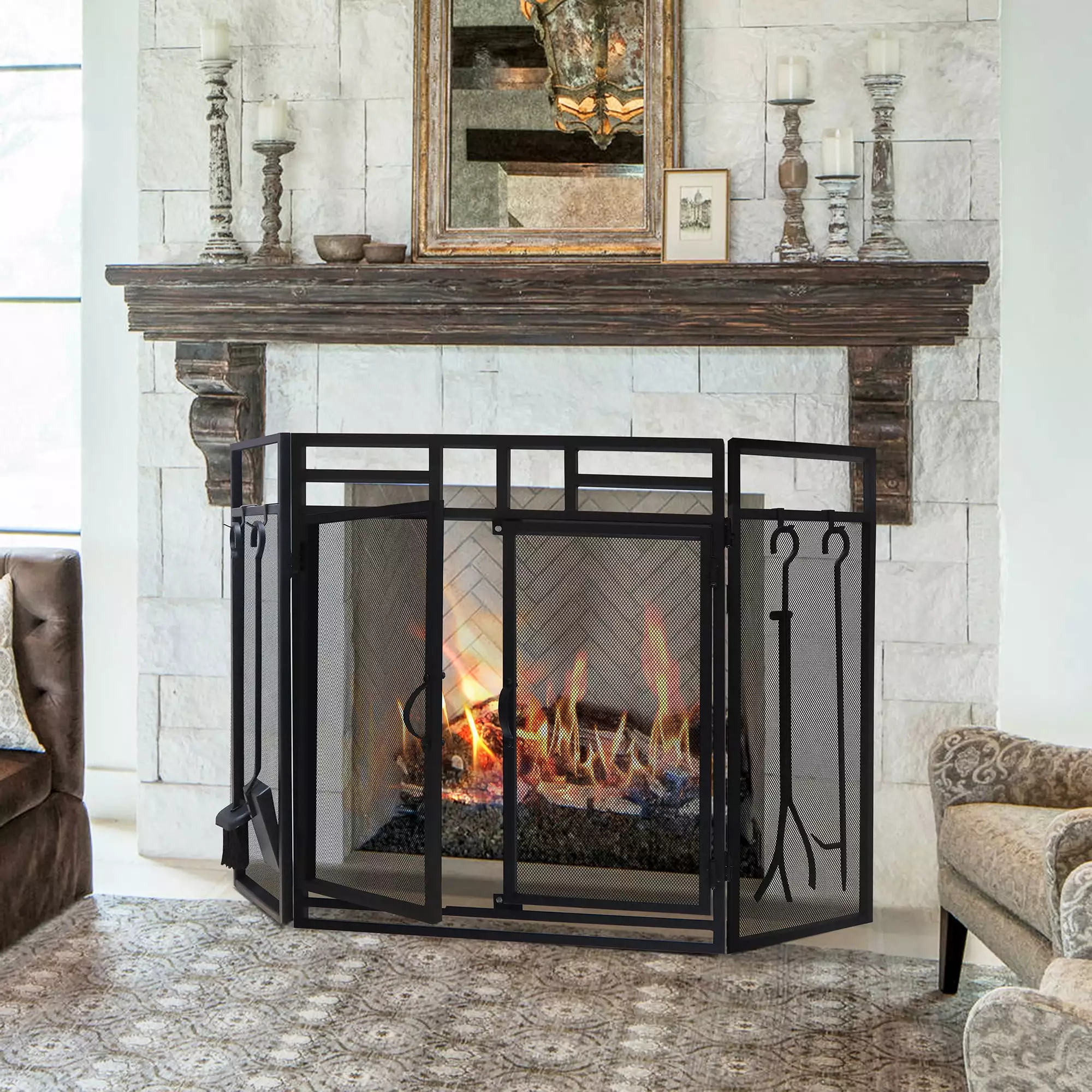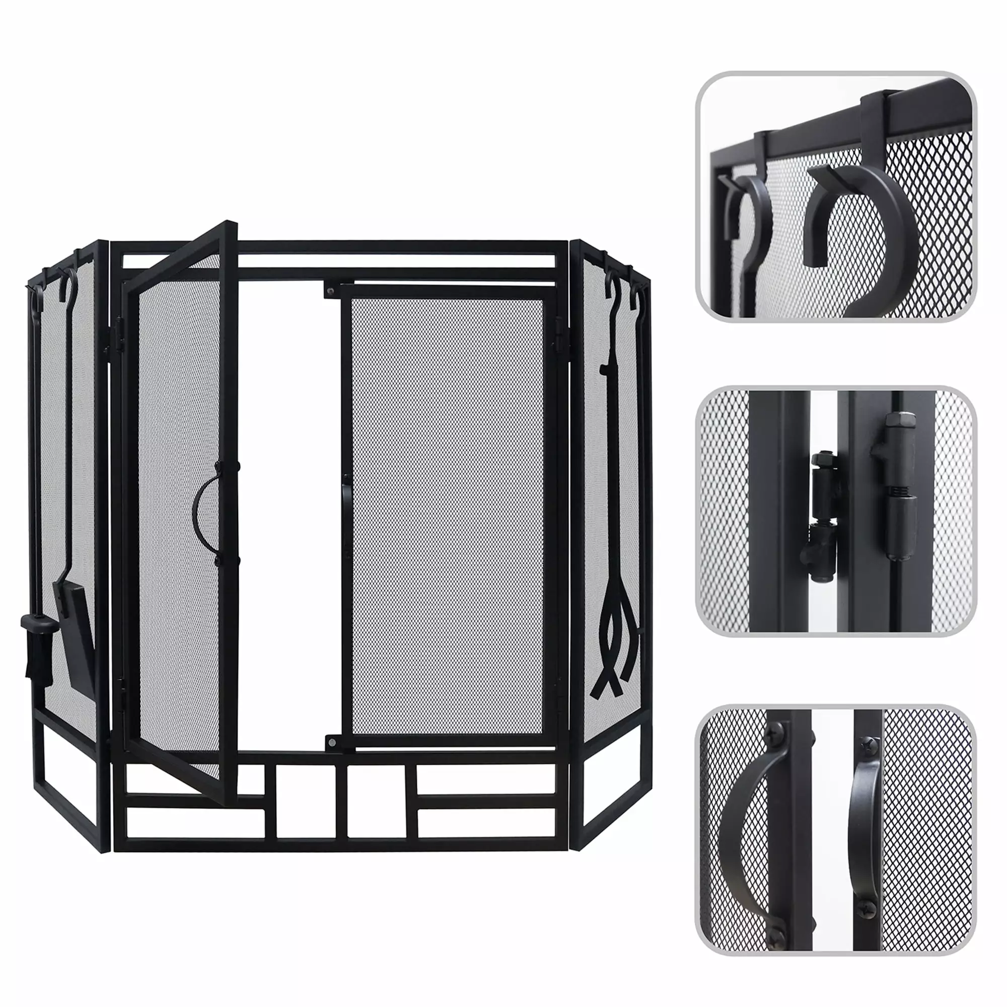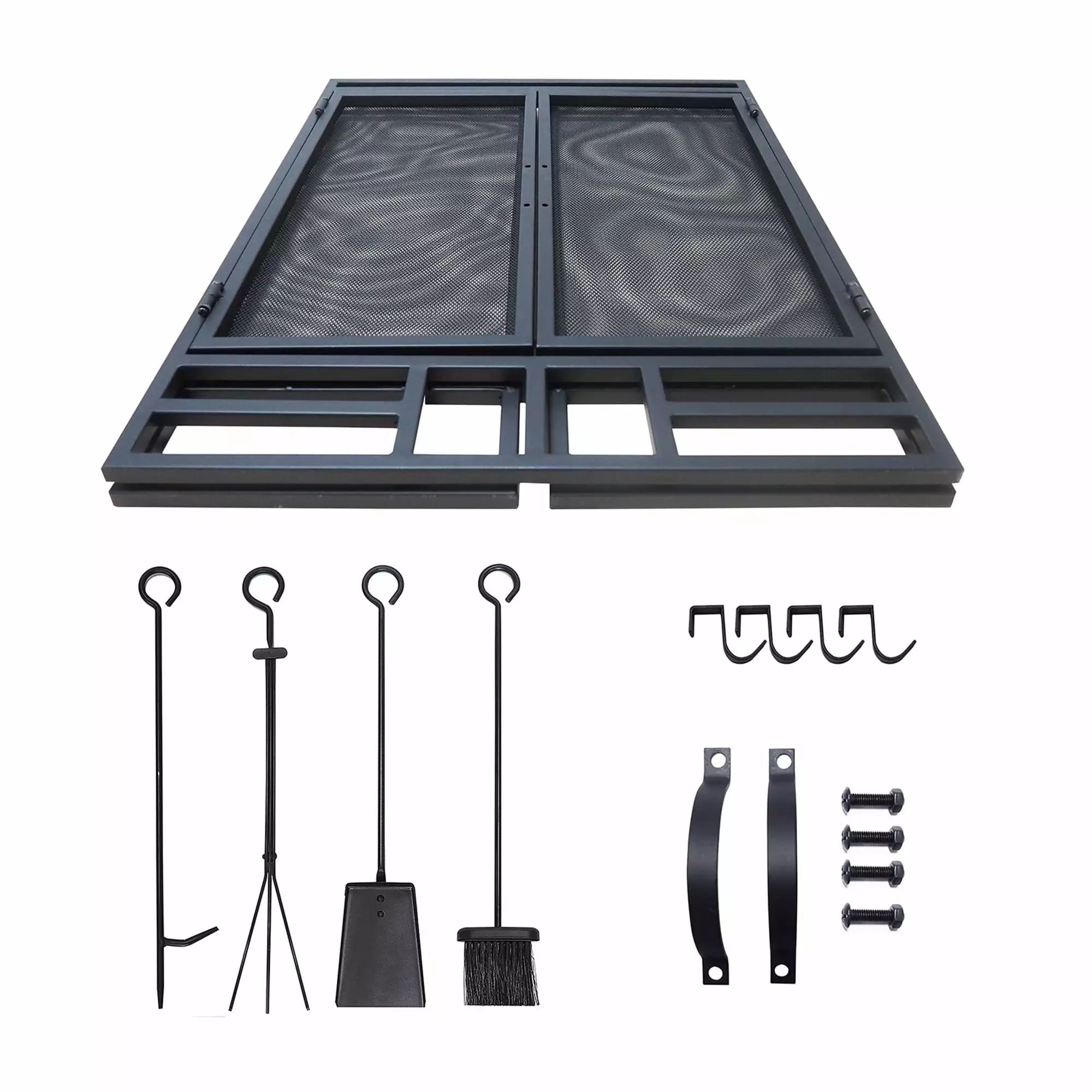 Skypatio Mesh Fireplace Screen with Fireplace Tools and Doors.
