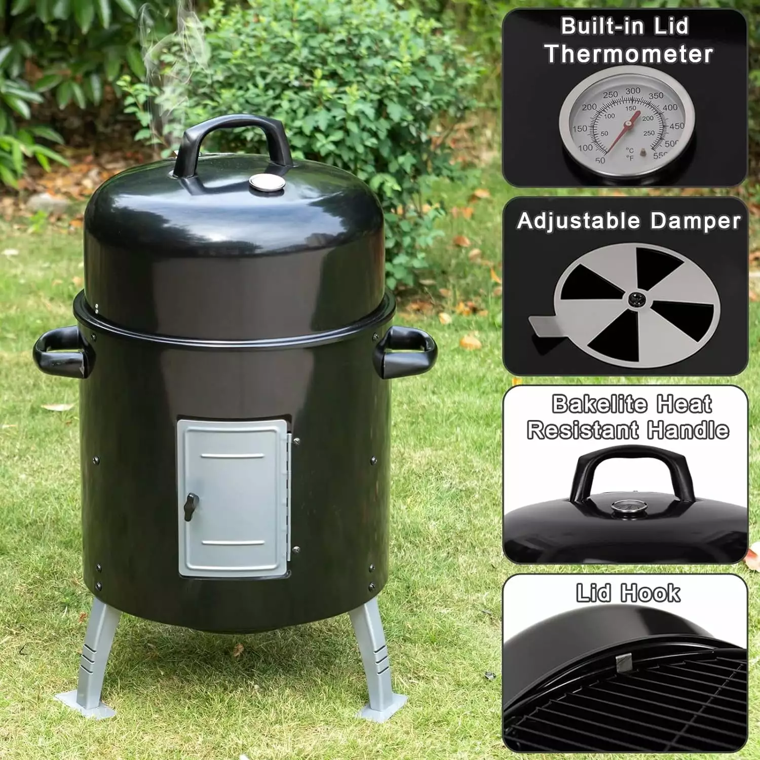 - 2 in 1 Smoker & BBQ Grill: The 2 in 1 vertical smoker and BBQ grill offers all you need for the ultimate cooking experience. Combining a charcoal smoker and grill. this smoker provides various ways to cook for all your friends and family.