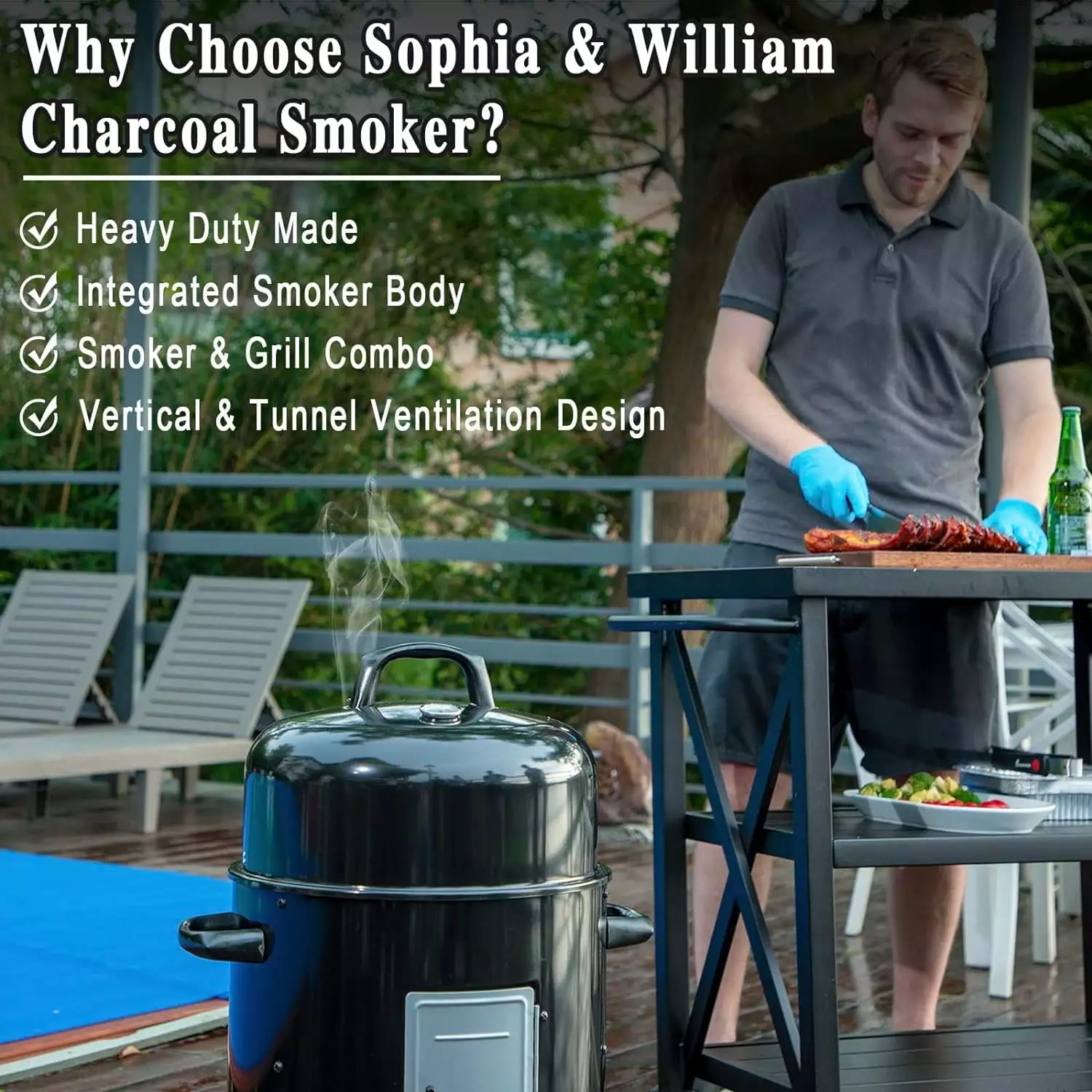 Sophia & William 17 Inch 2 in 1 charcoal smoker & grill for everyday grilling