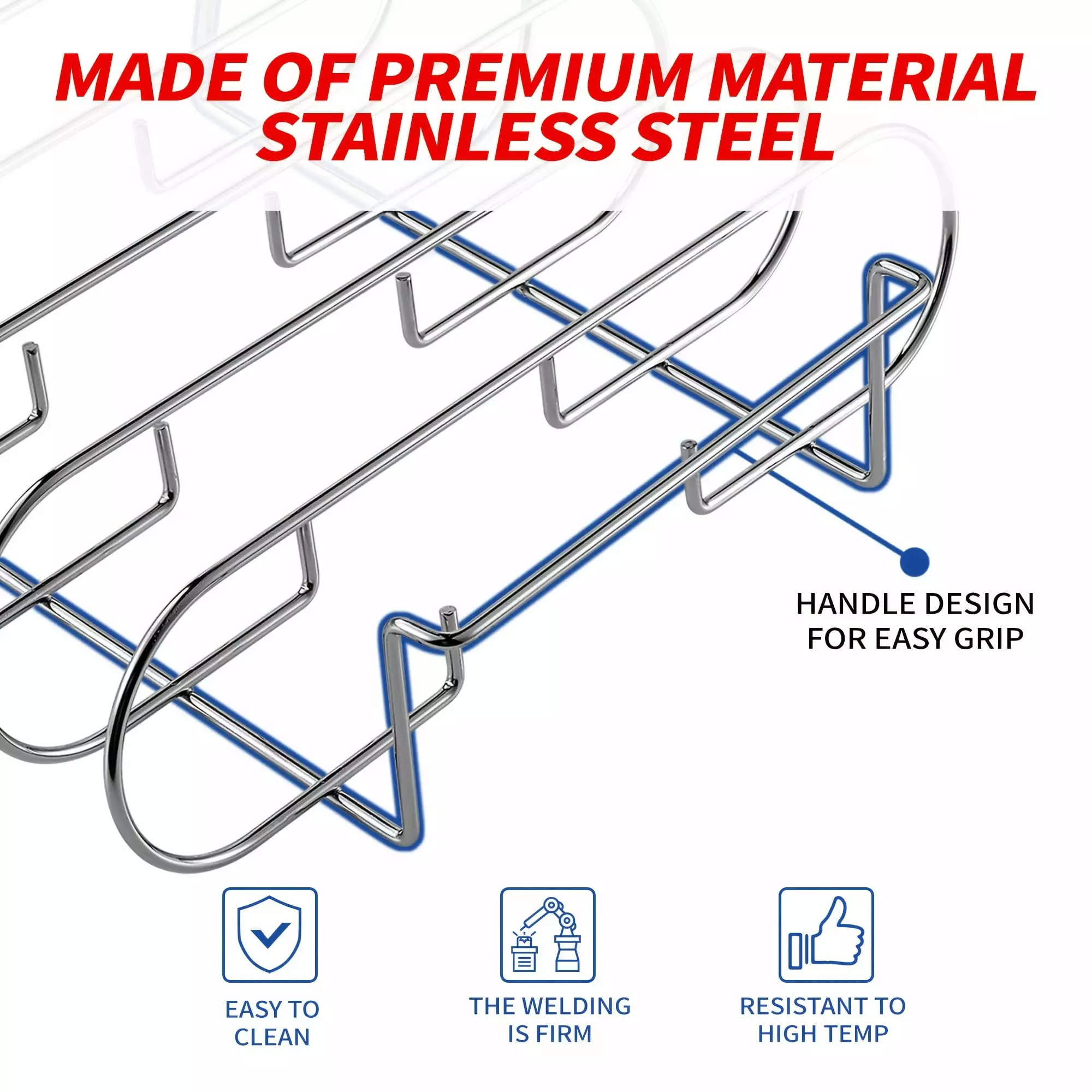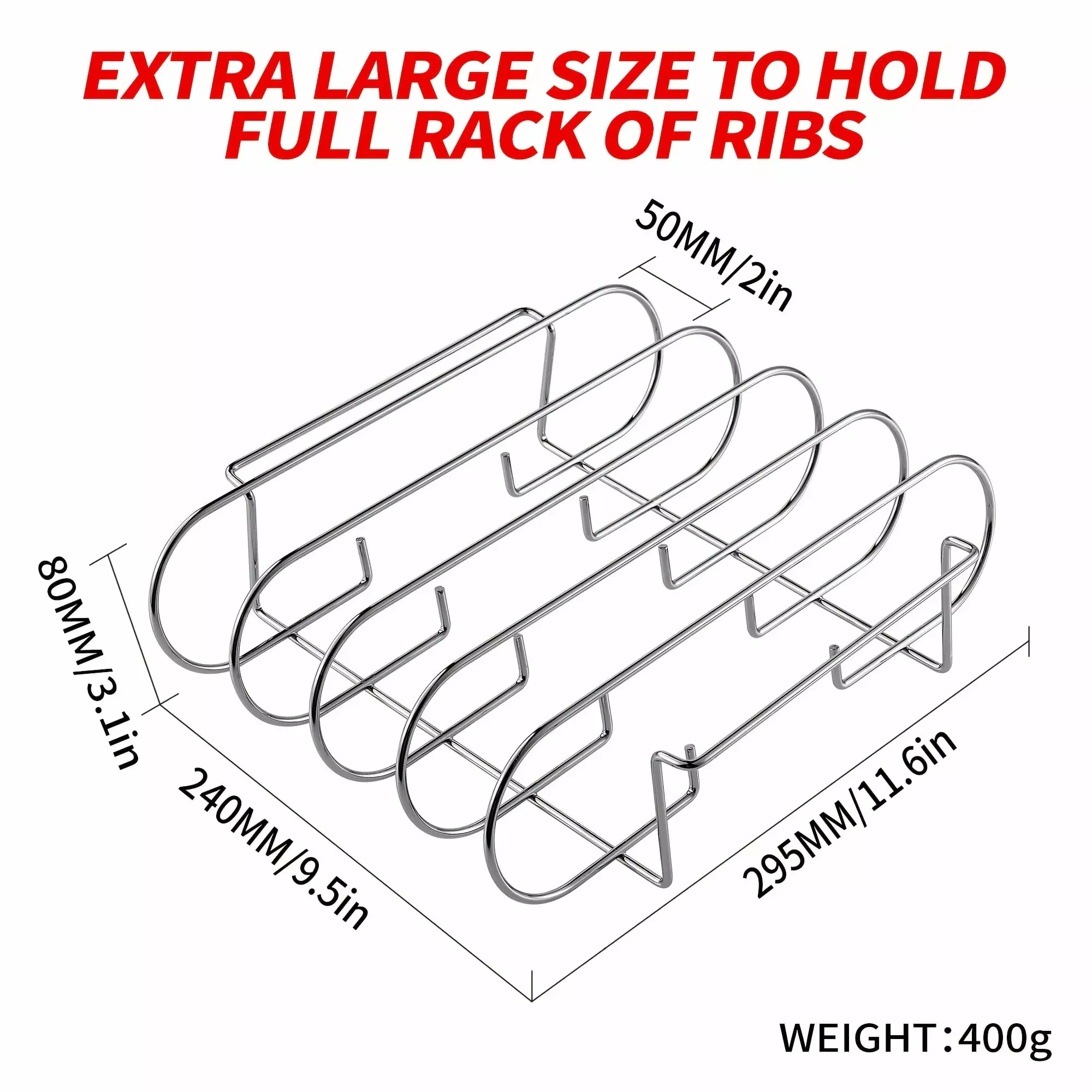Stainless Steel Roasting Stand for 5 Rib Racks Compatible with Gas & Charcoal BBQs for Outdoor Cooking