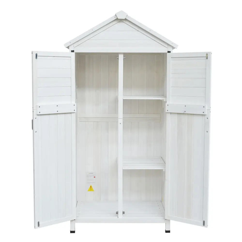Storage Shed With Double Doors For Outdoor Garden Tool Organization – White