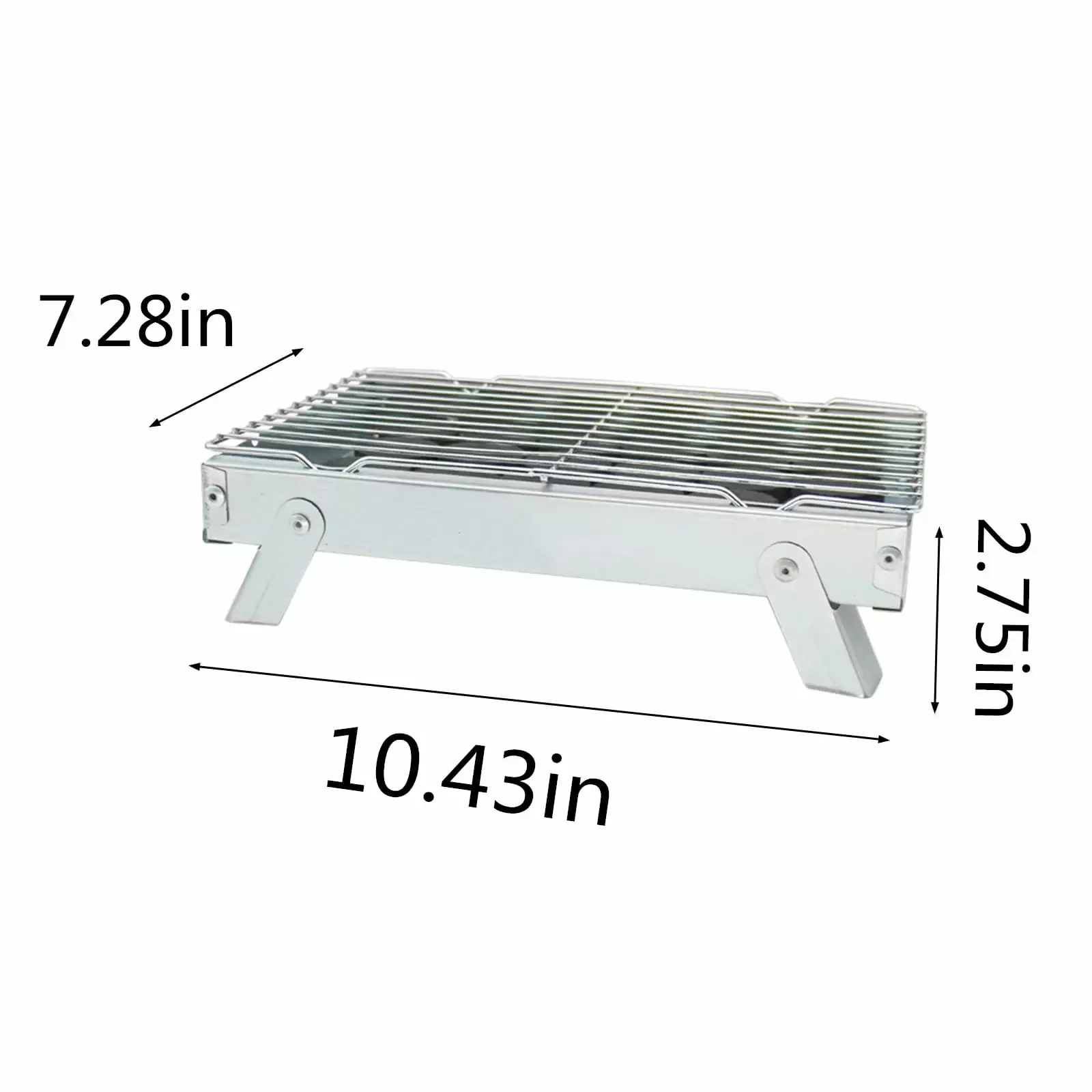 [Lightweight & Portable]Camping BBQ Grill is lightweight and portable. 0.7 Kg. folded and packed in box 10.6×7.48×1.97 Inch. and the BBQ grill opened size is 10.43×7.28×2.75 Inch. big space for use but small package is easy carry & storage.Not screws needed and easy to set up.removable grill and mess-free ash catcher for easy clean-up.
