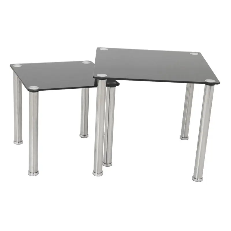The T32-A is a pair of nesting side tables / end tables. Featured are black glass tops and chrome-effect metal legs. A versatile solution that is attractive. sturdy. and easy to assemble.