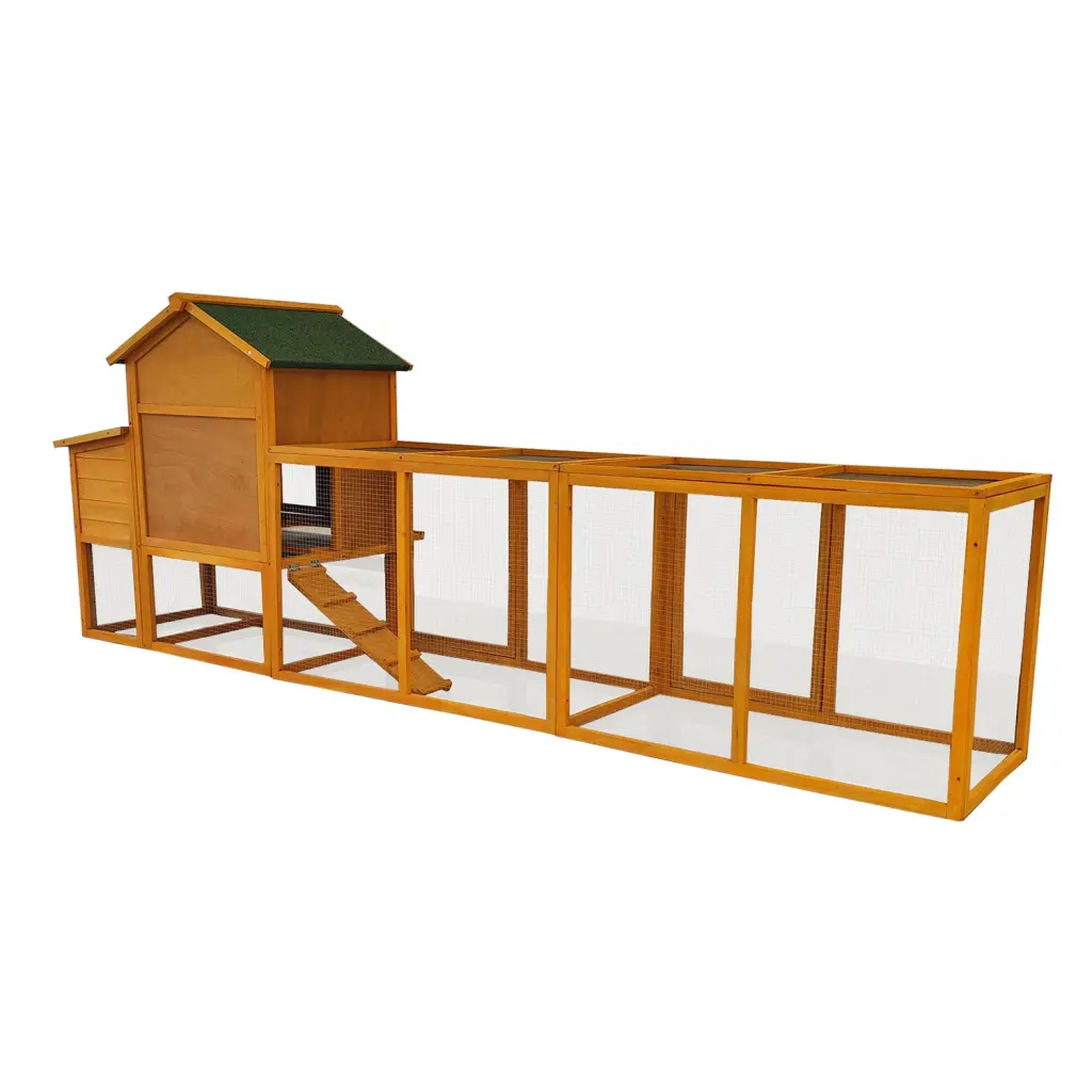 Functional Perch and RampThe chicken coop and run has a built-in perch design for your chickens to roost and rest, while the ramp allows easy access in and out of the coop, offering an overall enriching environment.