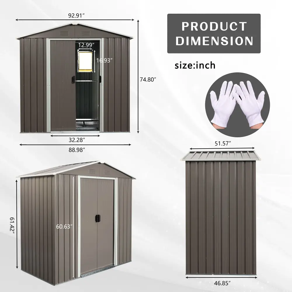 88.98″ Outdoor Metal Storage Shed With Window ✓ Tilt Function – Access Bikes Easily ✓ Padded Contact Points – No Frame Scratches ► Organize Cycling Gear Easily