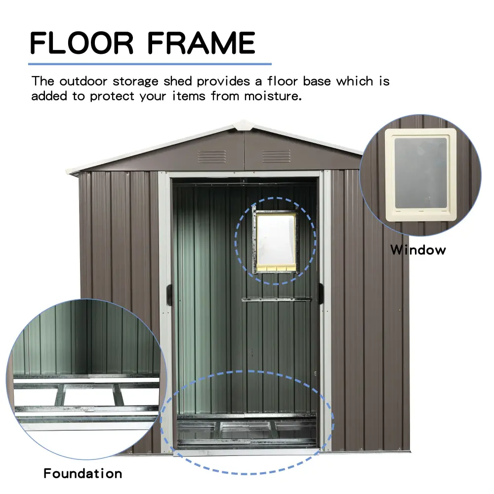 - Robust Construction: Shed features aluminum frames for sturdiness and galvanized steel panels with eco-friendly coating for durability against harsh weather for at least 6 years.