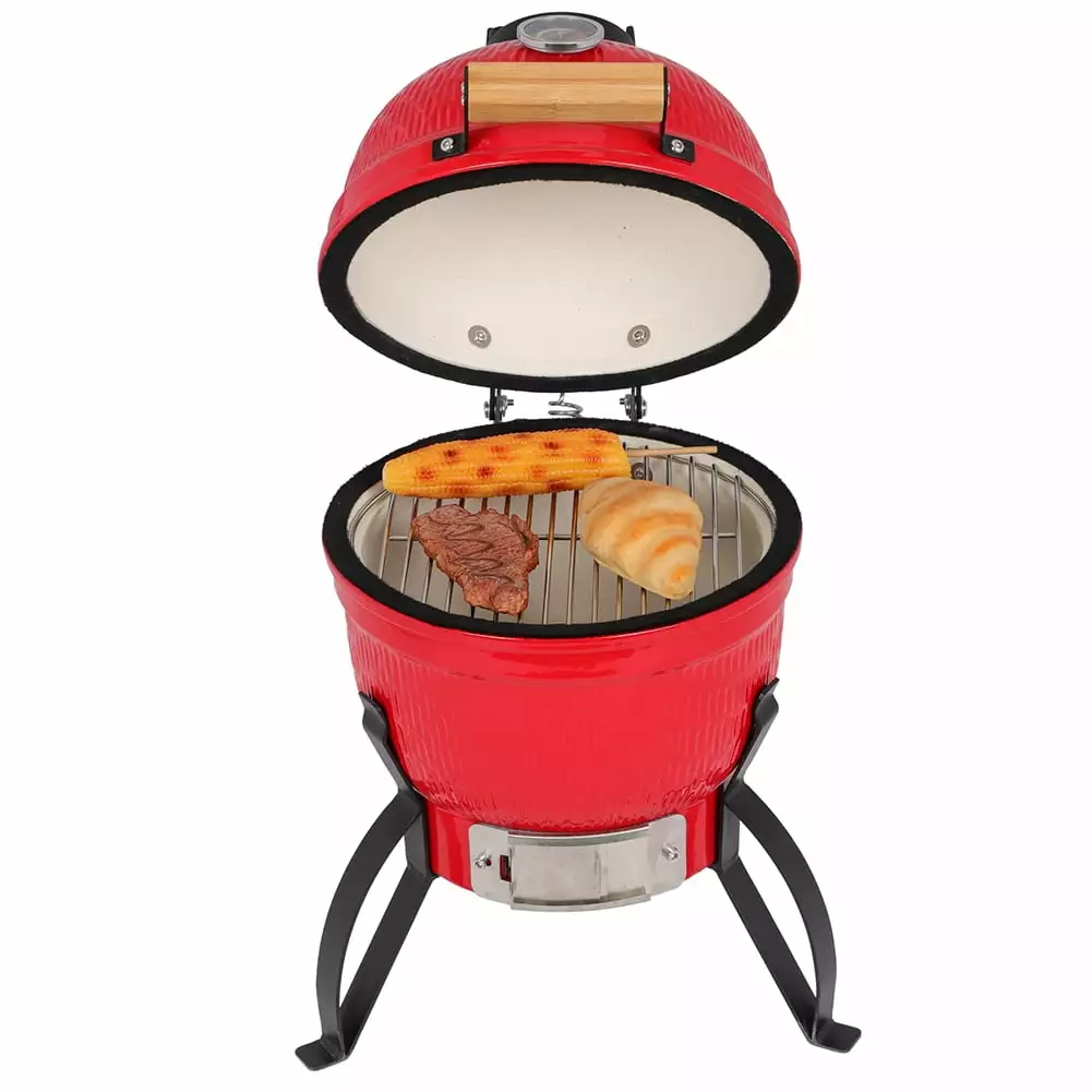 The ceramic wall has a huge heat storage capacity. which can effectively absorb heat for several hours and keep the temperature between 50-800 degrees! The heavy-duty ceramic structure and egg-shaped design are also conducive to the fuel efficiency of the barbecue. The thick sides conserve heat well. and almost no charcoal and oxygen are needed to continue fueling the fire.