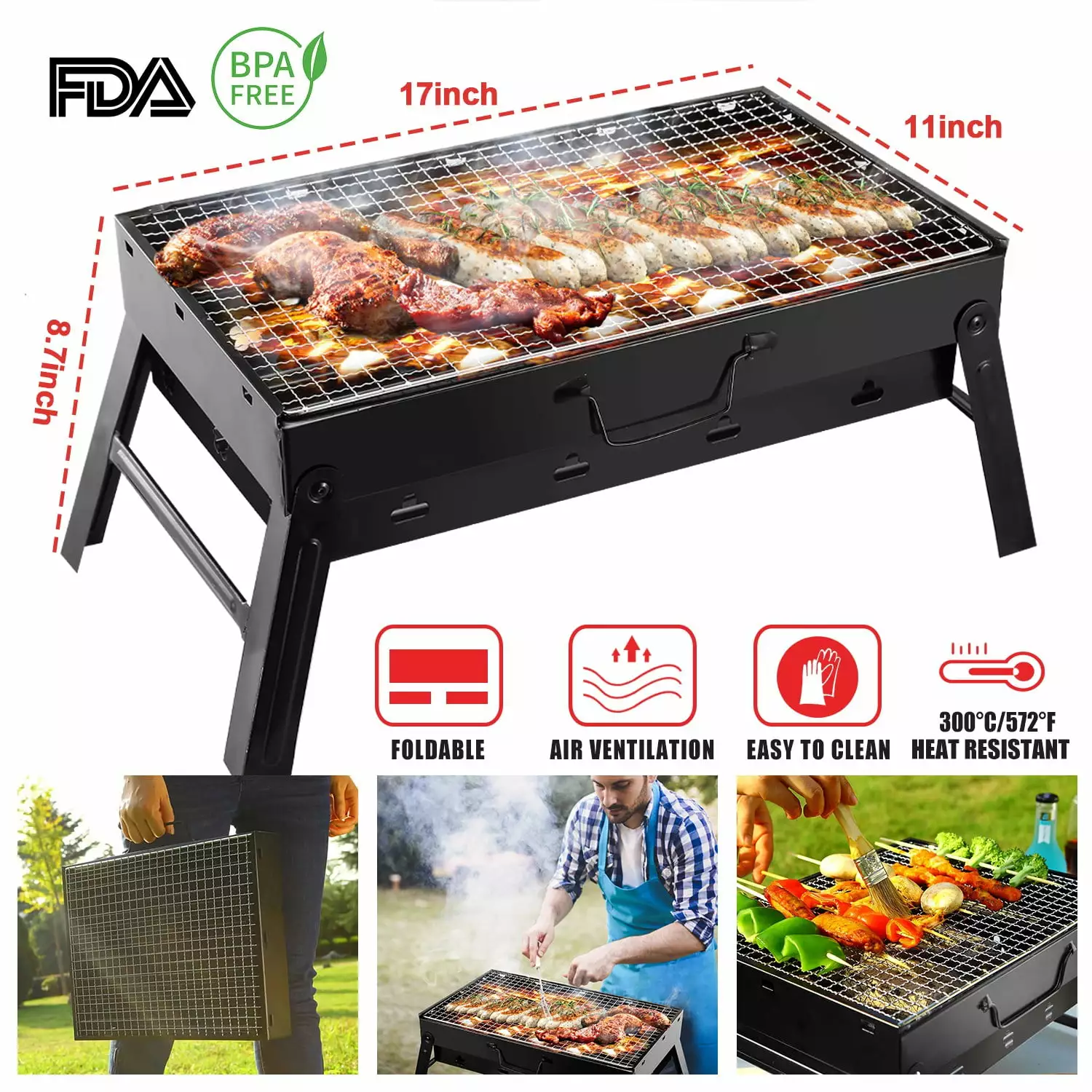 - [Safe & Durable Stainless Steel Materials]: Constructed of high heat resistant painted food grade stainless steel which gets rusty hardly. When finished grilling. both pieces fit nicely inside the folded and the grill is removable and easy to clean.