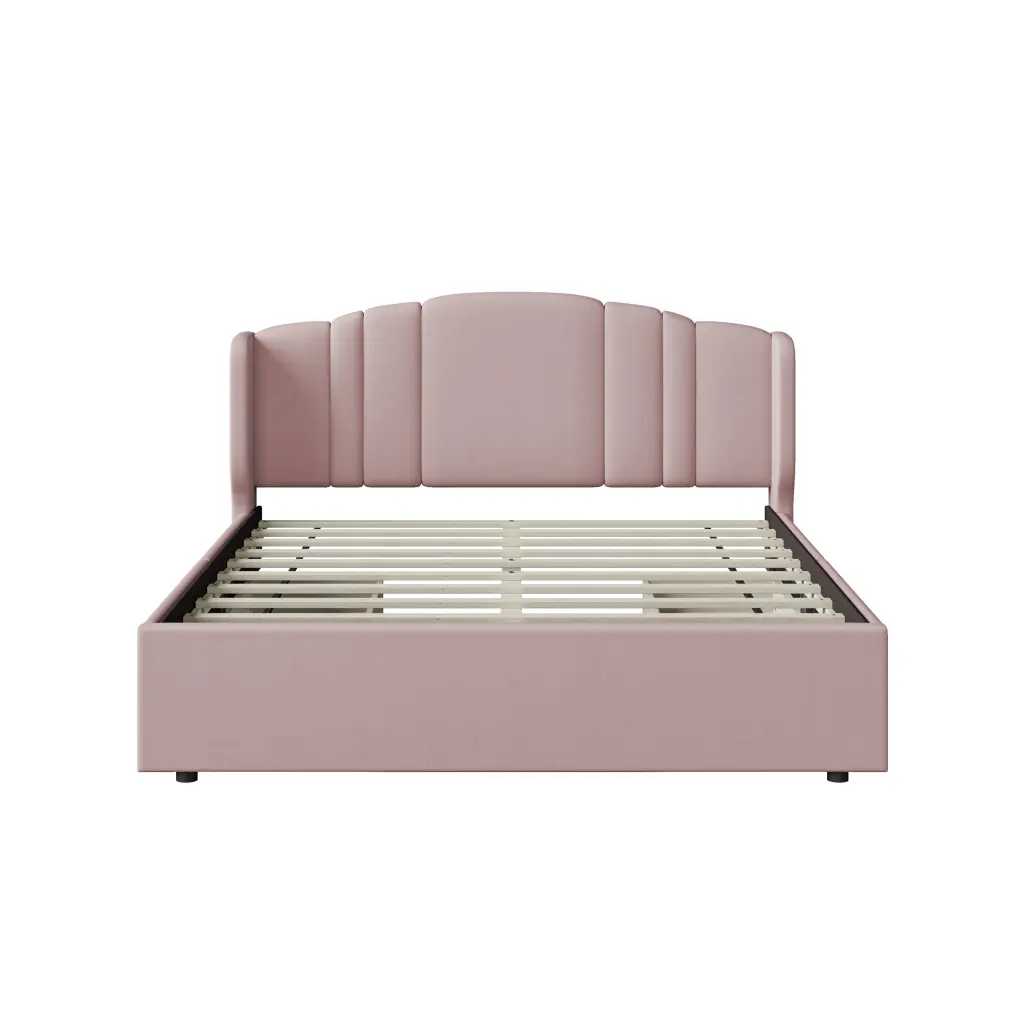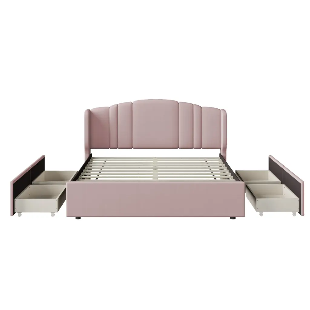 Upholstered Platform Bed with Wingsupport Headboard and 4 Drawers, No Box Spring Needed, Linen Material , Queen Dimensions Pink Description: Upholstered Platform Bed with Wingsupport Headboard and 4 Drawers, No Box Spring Needed, Linen Material This beautiful Upholstered Platform Bed features upholstered headboard that adds a con