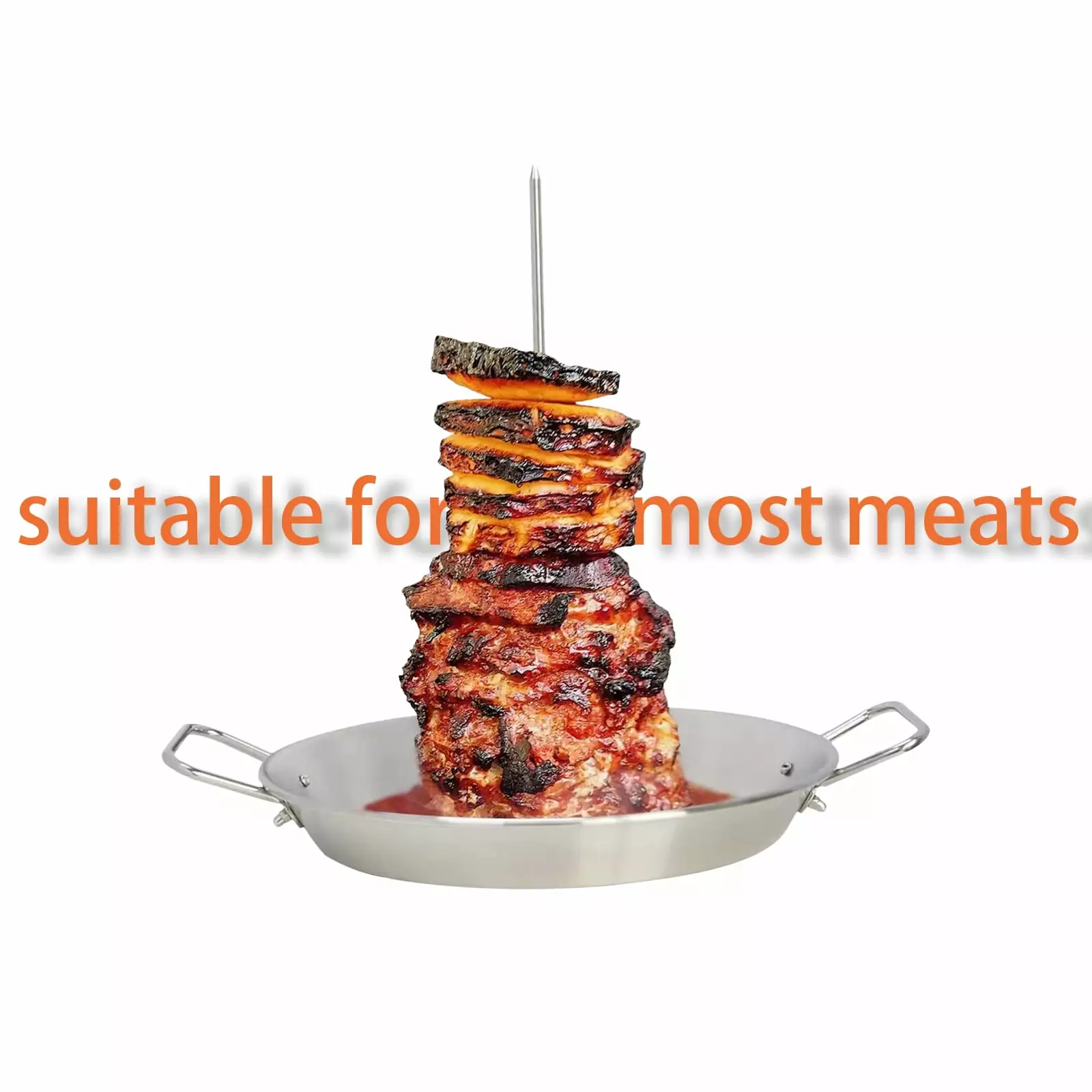 - Versatile Vertical Cooking Stand: You can use this vertical BBQ skewer for making tacos pastor. also can be used for so many other creations. like gyros. shawarma. chicken. kabobs. or even a pork roast.
