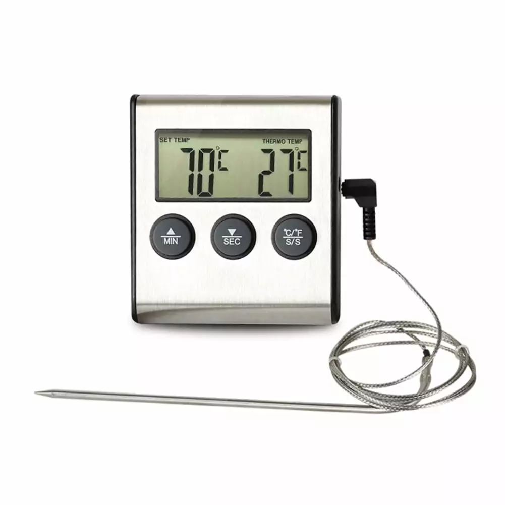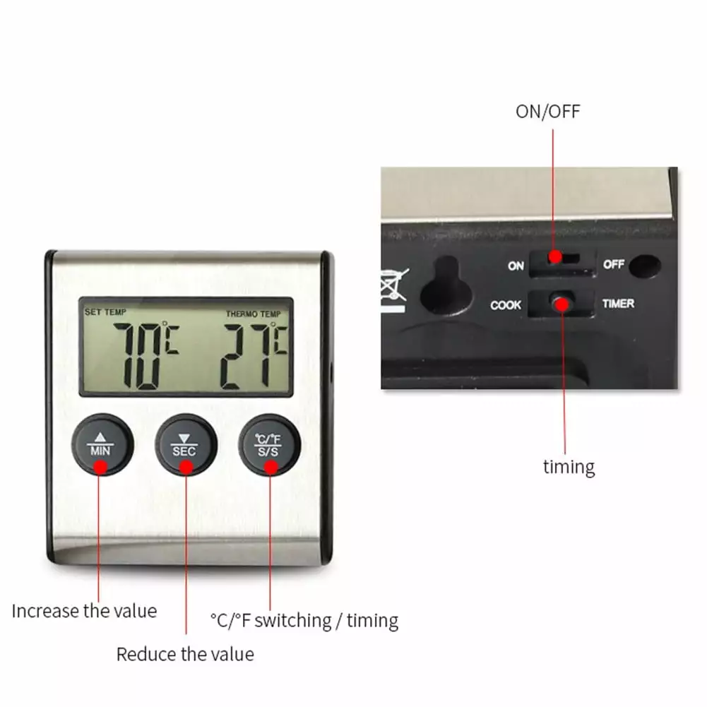 Kitchen thermometer and timer 2-in-1 design. so you don’t have to worry about overtime and overheating.