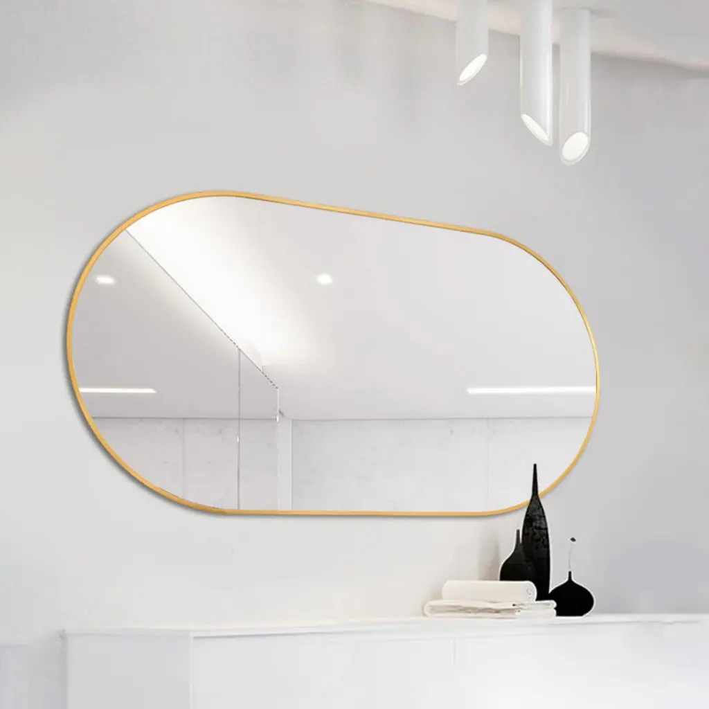 OVAL Hd Silver Mirror: The smooth 5mm float silver glass reflects an clear image without deformation. wall mounted mirror is recessed into the frame and floated from the frame edges. The oval shape and the super-thin frame make a sense of solemn and order, extending visually space, depth, and light. Not only can it better demonstrate your figure, but at the identical time, there is no fancy decoration that influences the overall view, assisting you dress yourself every day.
