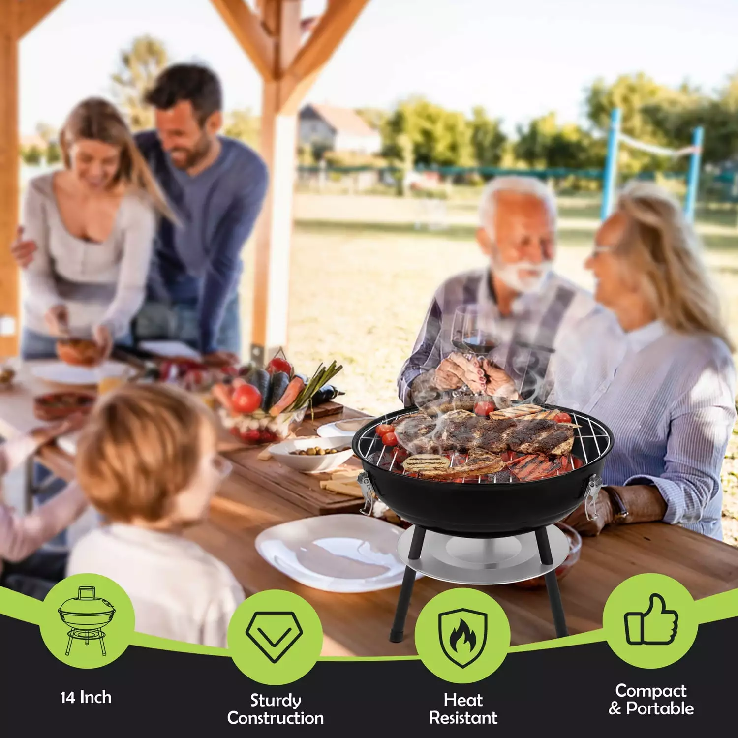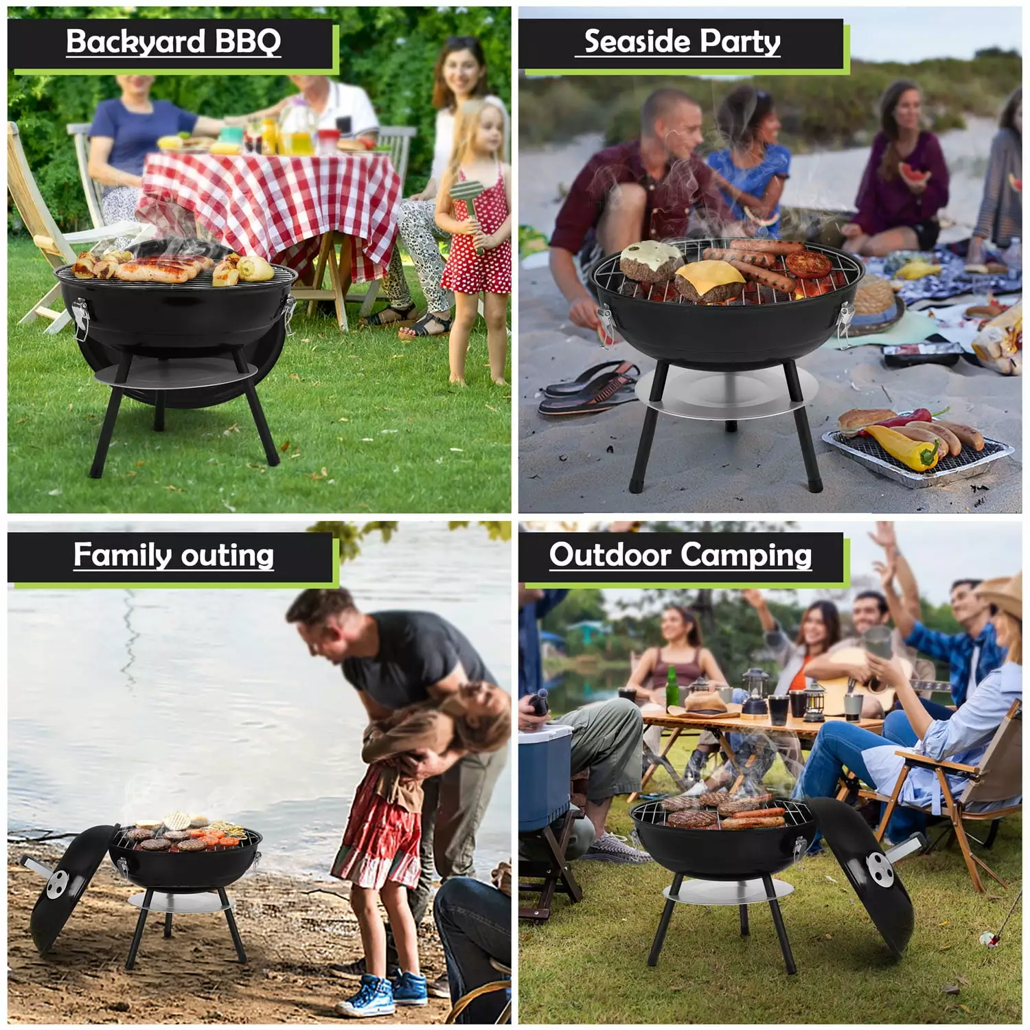 - COMPACT & PORTABLE – 14 inch charcoal grill with a light-weight structure is portable. Compact design for easily placing in the trunk of the car. 3 locking buckles are great for securing the lid to make it easy to move around and carry to patio. backyard. porch. camping. park. beach. garden or other outdoor locations