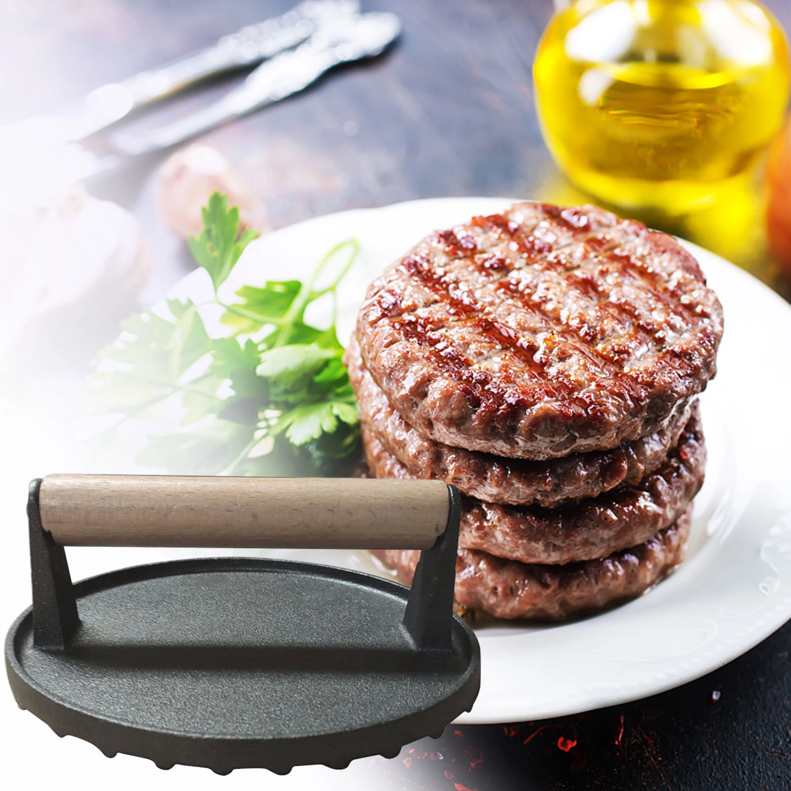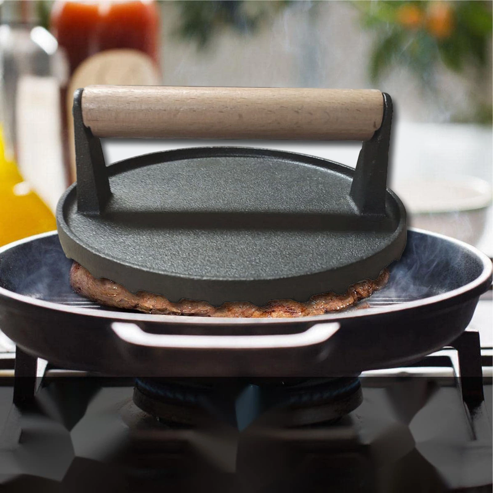 - Comfortable and Heat-Resistant: Equipped with comfort-grip wooden handles that provide a heat-resistant way to handle these grill accessories.Can be used as a sandwich toasting press or a burger hammer on a cast iron skillet