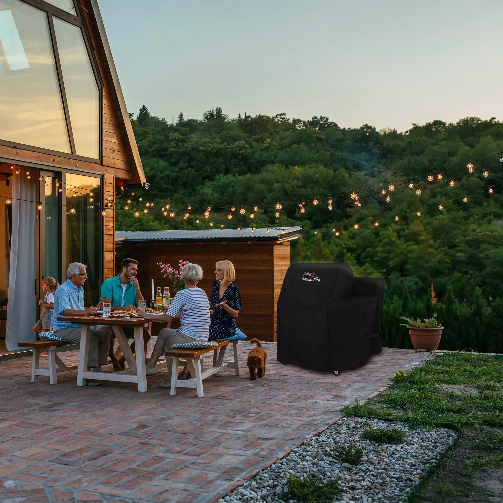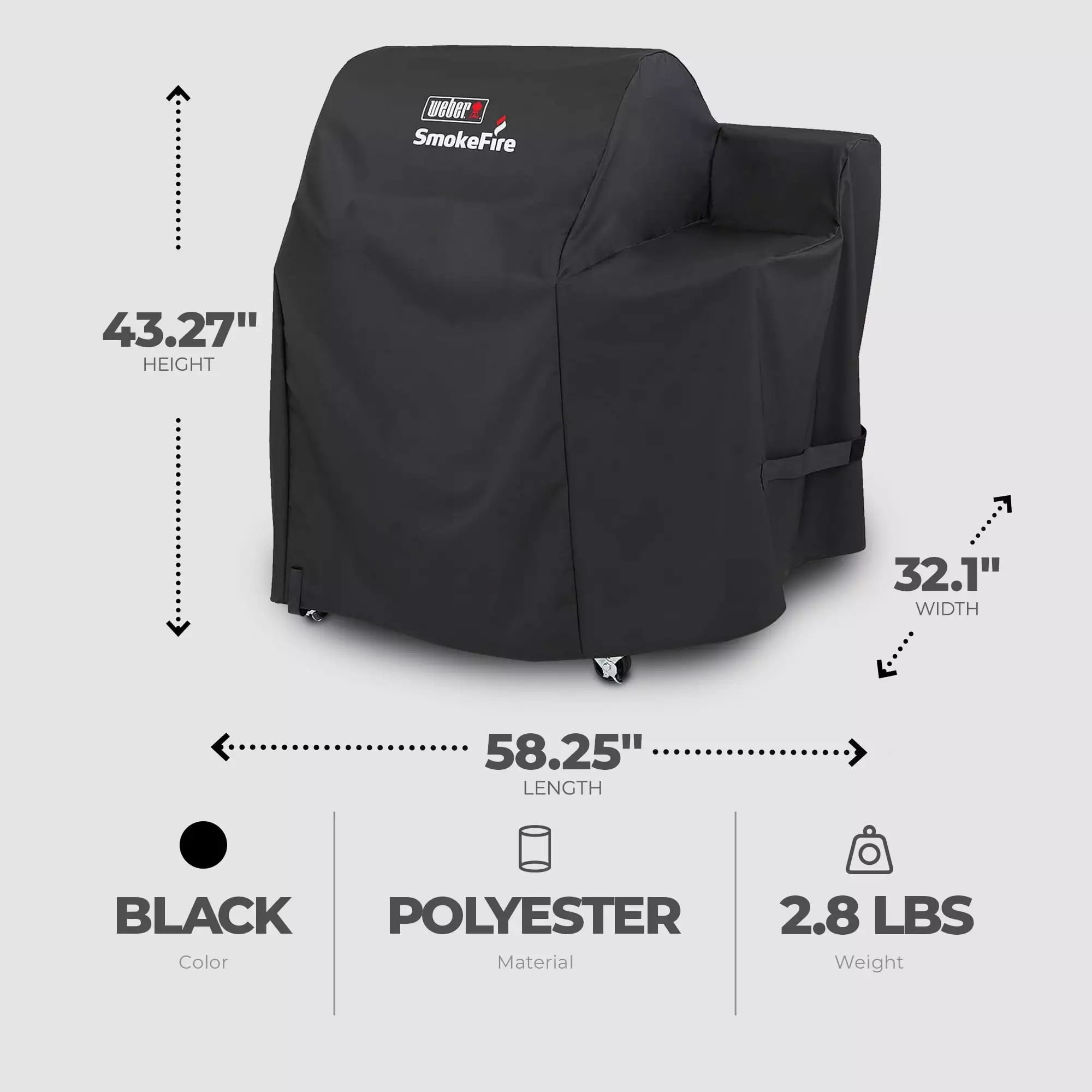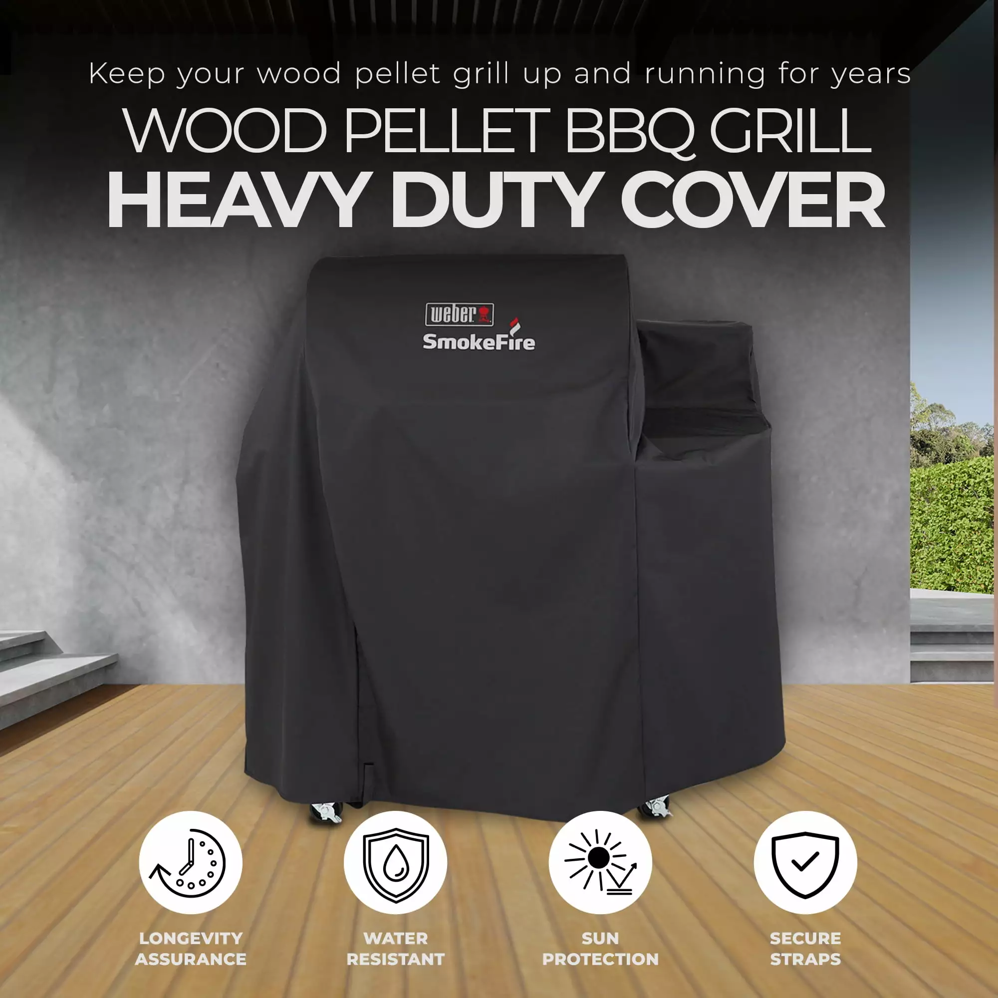 The lightweight yet durable premium grill cover will keep your grill looking like new. Its water-resistant material helps maintain a clean. sleek surface for years to come. Fits Smokefire EX4 Wood Fired Pellet Grill.