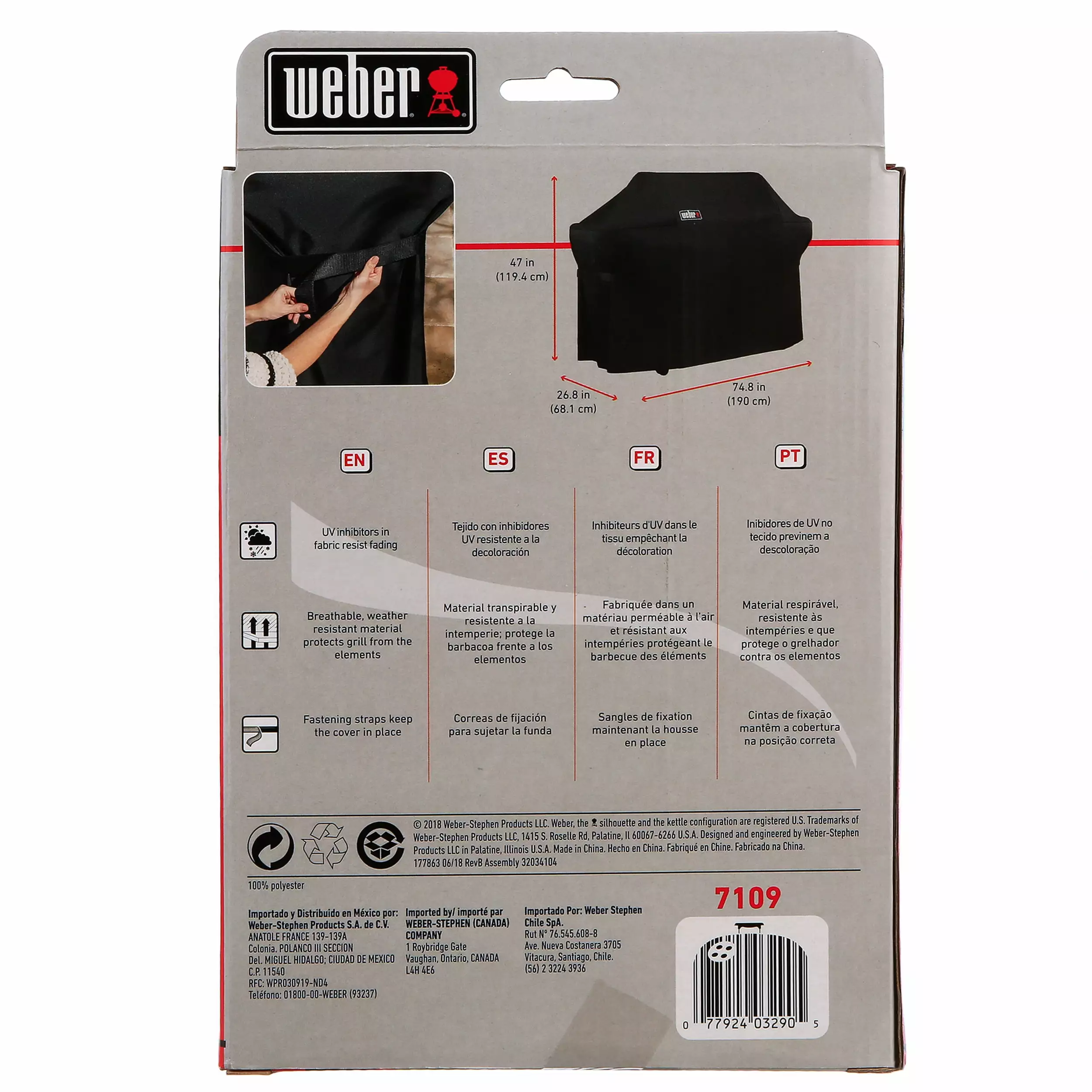 - Weber grill cover includes a drawstring storage bag sewn into seam