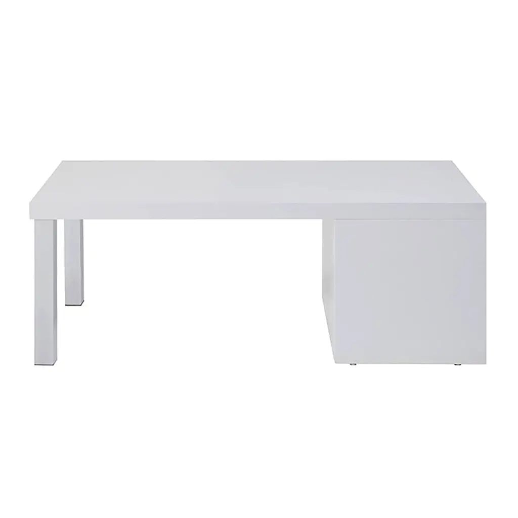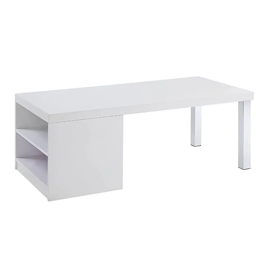 White High Gloss and Chrome Coffee Table Specification: Romance Copy This modern coffee table showcases a high gloss finish on its tabletop, elevating the aesthetic of your living room with a sleek look. Assistanceed by sturdy metal straight legs, it balances beauty and functionality, providing stability while featuri