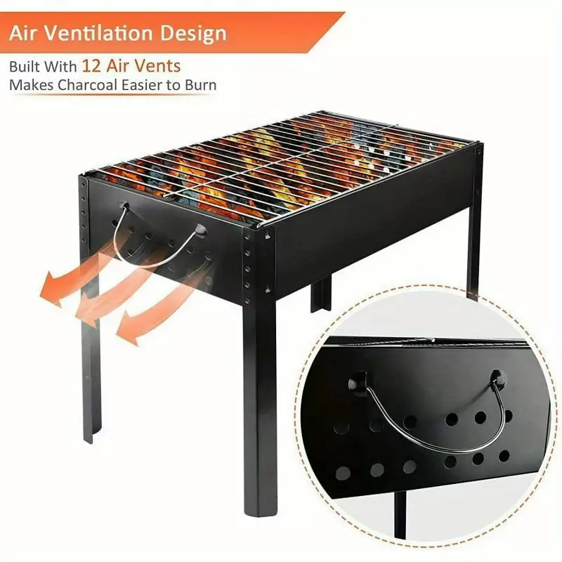 YSSOA 20” Portable Foldable Outdoor Charcoal Barbecue Grill. Detachable Collapsible Tabletop BBQ Smoker Grill Tool for Cooking. Camping. Traveling. Hiking. Picnics. Beach. Backyard Party. Black