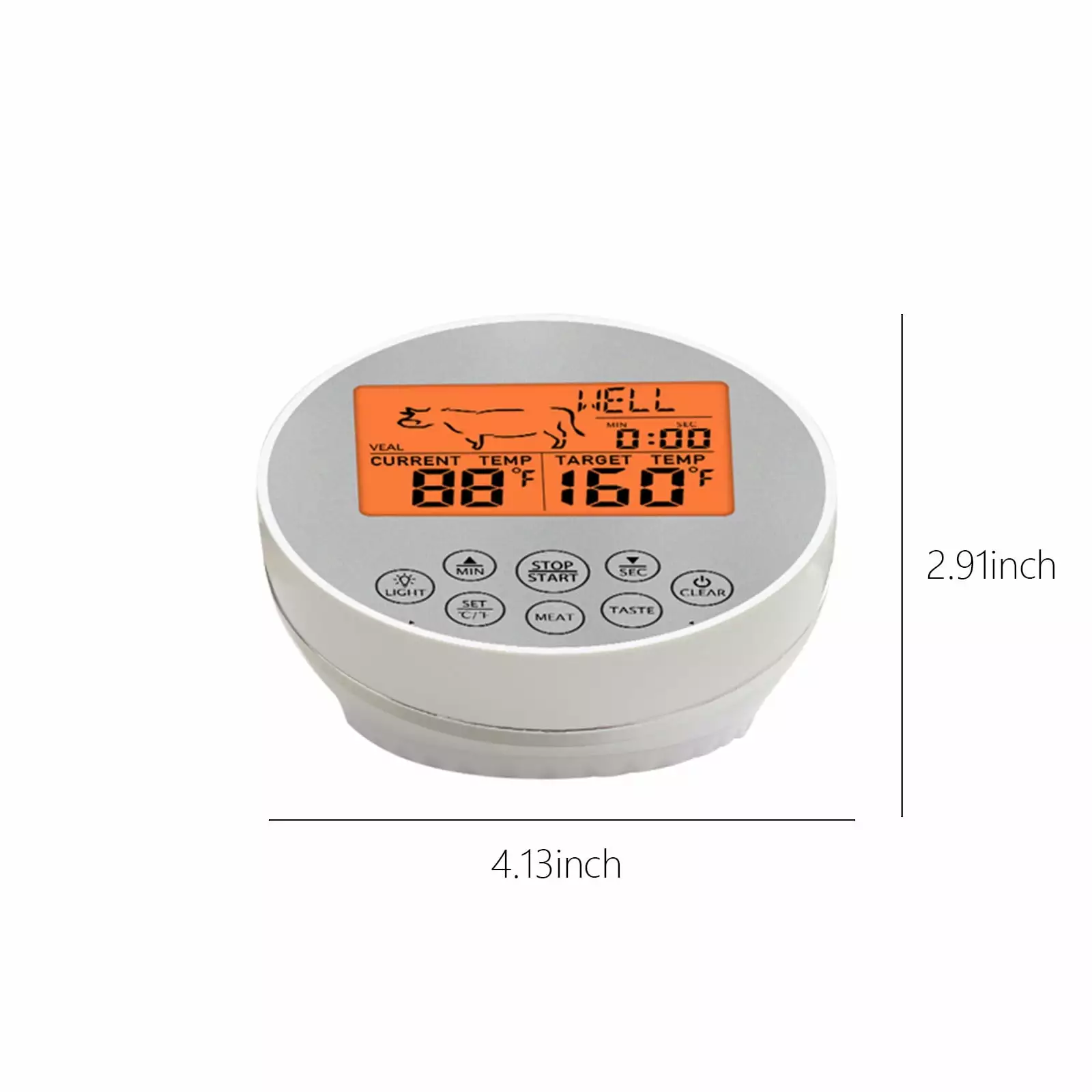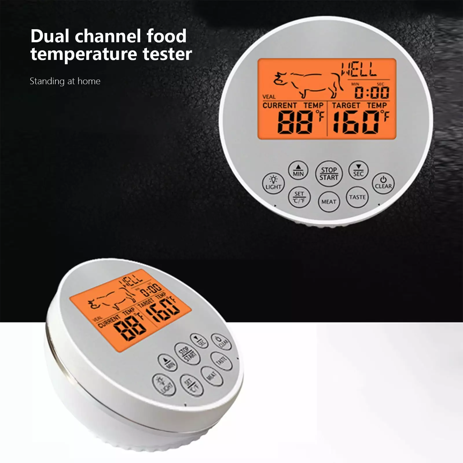 BBQ High/Low Temperature Alarm: This smoker thermometers will flash and beep to notify you if your grill’s temperature ever exceeds your desired range. and when to add more. HI/LOW temp range alarm is specifically designed for usage with smokers. grills and BBQs Dual probe grill thermometers : Monitor temperatures of two pcs of meat or grill temperature without swapping probes or using different devices preset temperatures and can also adjust set temperature manually Large & Clear Backlit LCD Display: This BBQ thermometers features a large display which features both food /oven/grill/smoker temperatures and timer for the intuitive experience. Use the backlight to view temperatures in any light condition Highly Accurate Probes: This oven thermometers features an accuracy of 1.8 F ( 1 C) to quickly to alert you of the slightest temp change in seconds. Cook anything you want with this food thermometers that can operate in a range of 14 F to 572 F (-10 C to 300 C) Easy to Use and Store: Perfect outdoor fryer accessories for your backyard kitchen. indoor and outdoor uses; Place this digital meat thermometers for cooking and use it with ease with its front facing buttons; Package Content: